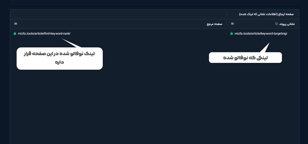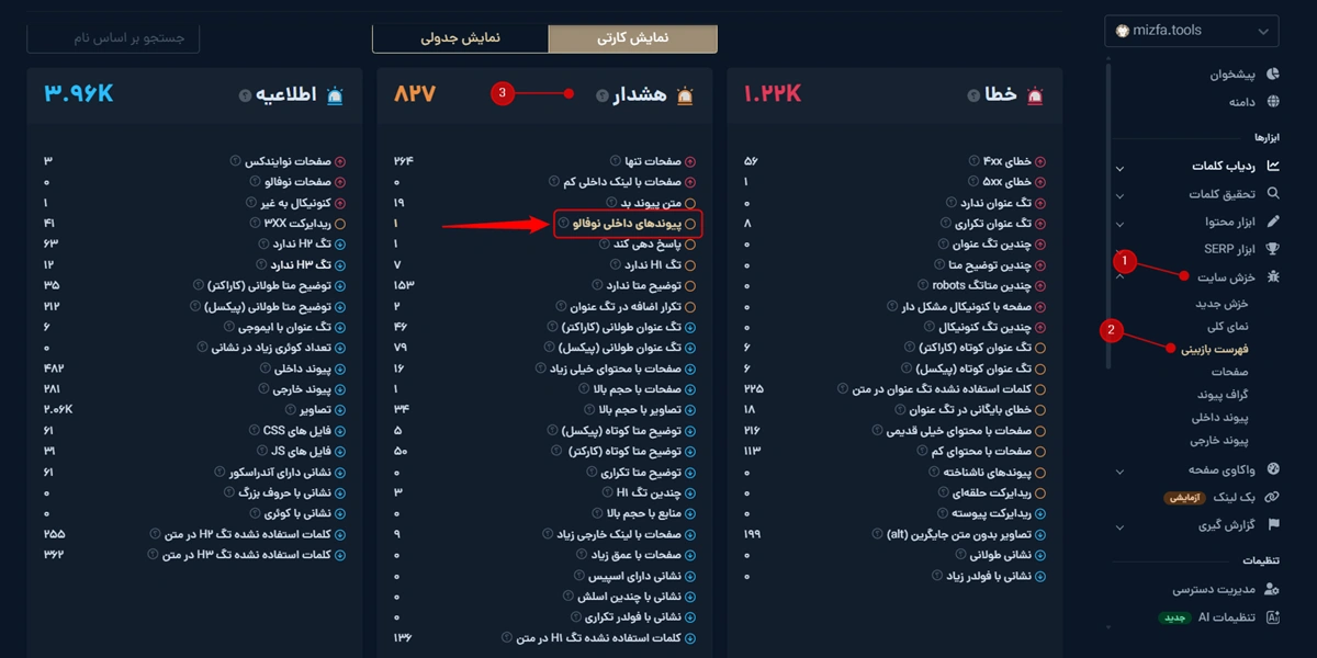 - میزفا تولز کنار این مورد عدد نشون میده و دقیقا مشخص میکنه چند تا لینک داخلی نوفالو وجود داره.