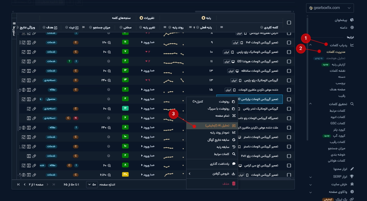 - اول وضعیت فعلی شما رو با دیتای موجود در تب مدیریت کلمات آنالیز میکنه.